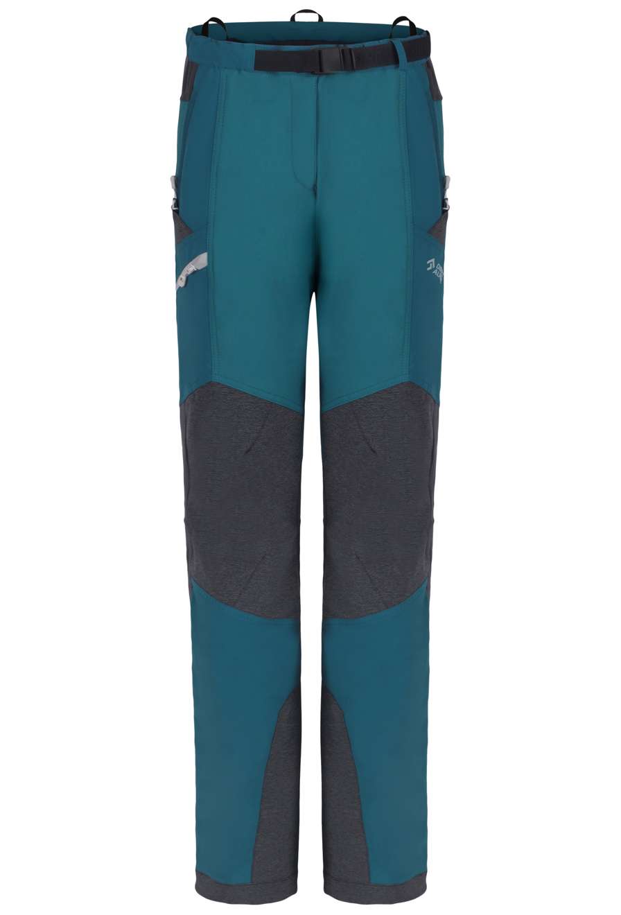CASCADE LADY Women's Outdoor Pants are designed for high-altitude trekking, climbing, ice climbing, mountaineering, and regular hiking. They are made from a durable blend containing Cordura® known for its excellent durability and abrasion resistance. The warmer brushed material not only provides warmth but also efficiently wicks away moisture.