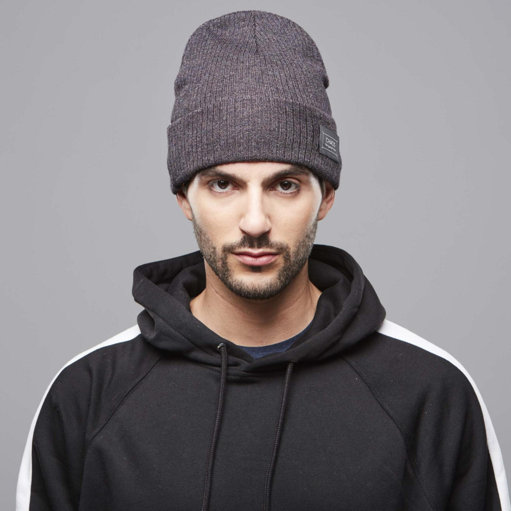 Modal blend space-dyed beanie, two-layer, can be worn cuffed or uncuffed.