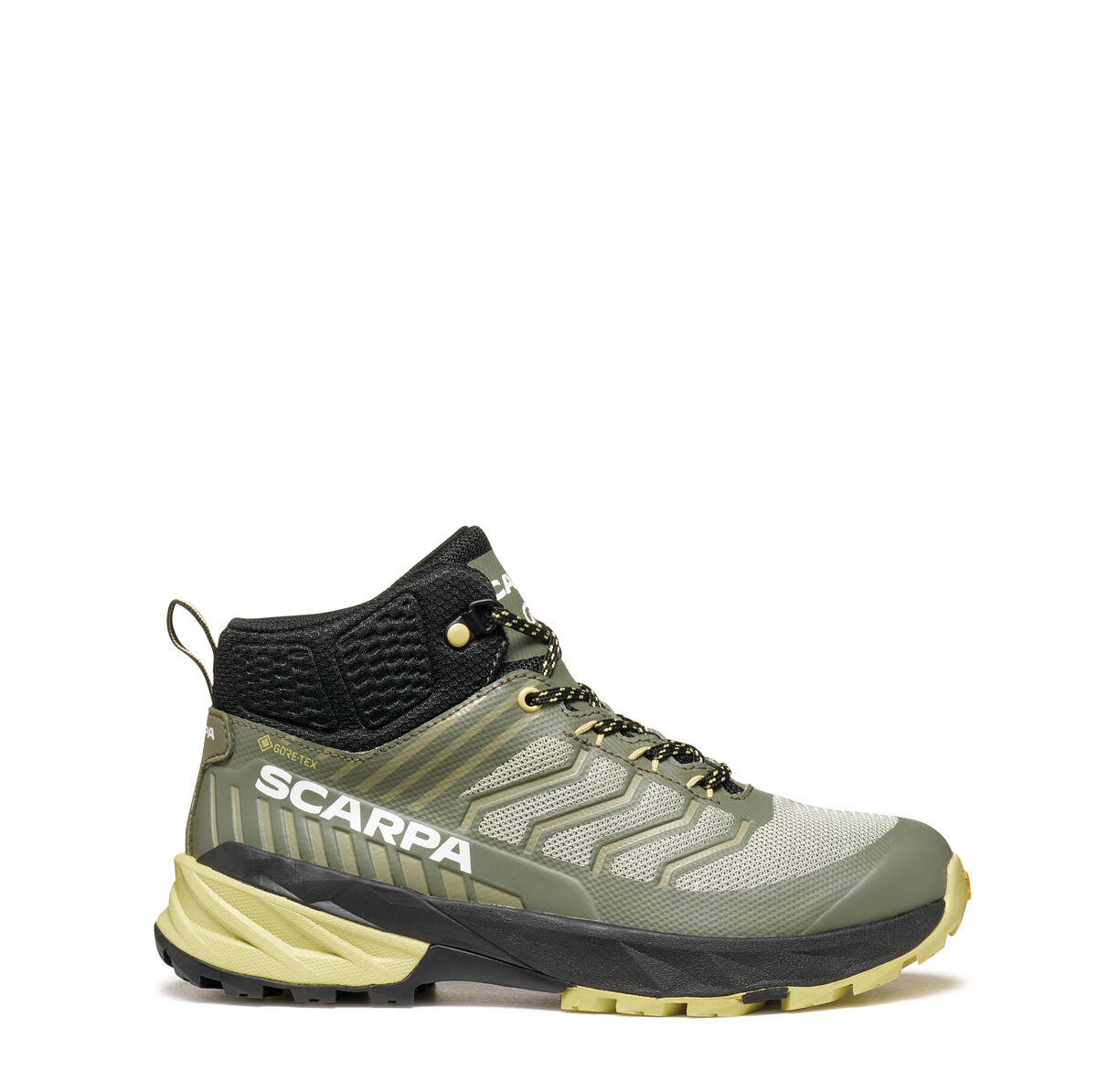 UPPER: Technical mesh with heat-sealed film external cage for more support, designed by SCARPA. Internal toe cap for more protection. Collar autofit 3D padding, wrapping the ankle for comfort and protection.