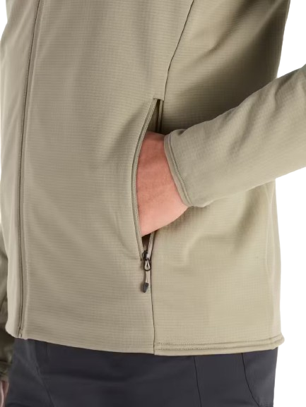 The jacket uses lightweight, breathable technical grid fleece that helps wick moisture away from the body and maintain comfort during movement. This makes it suitable for more active efforts as well as for layering under a shell when conditions turn colder, wetter, or more exposed.