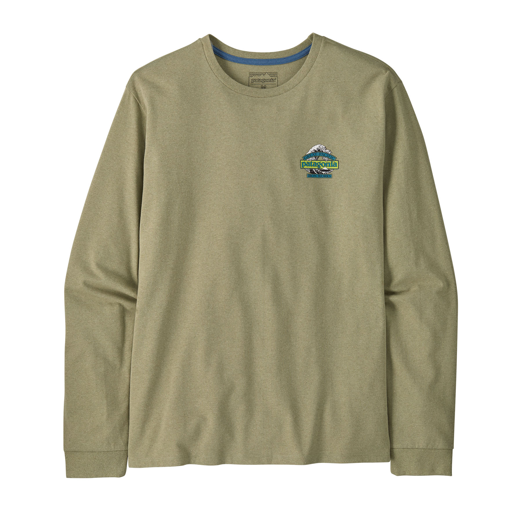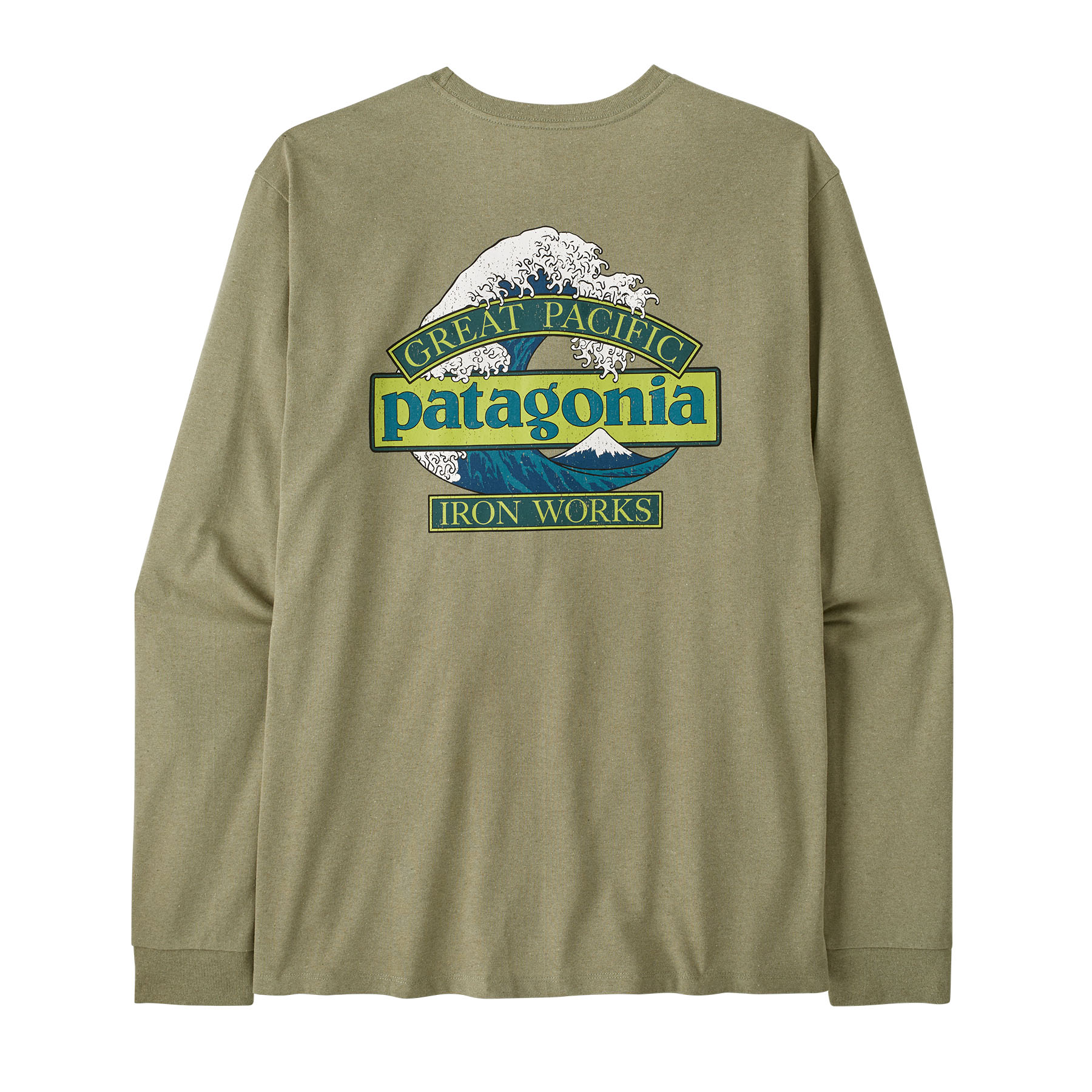 The Great Waves logo combines Patagonia’s wordmark with Hokusai’s iconic wave and Great Pacific Iron Works, the name of Patagonia’s first retail store, a short walk from some of the best waves in Ventura, California. It is screen-printed on the Men's Long-Sleeved Great Waves Responsibili-Tee®, a classic long-sleeved crewneck tee made from a soft, durable 50/50 blend of recycled cotton and postconsumer recycled polyester jersey. By using fabric scraps and recycled bottles, this 100% recycled garment reduces reliance on virgin raw materials. Know better; do better. Made in a Fair Trade Certified™ factory.