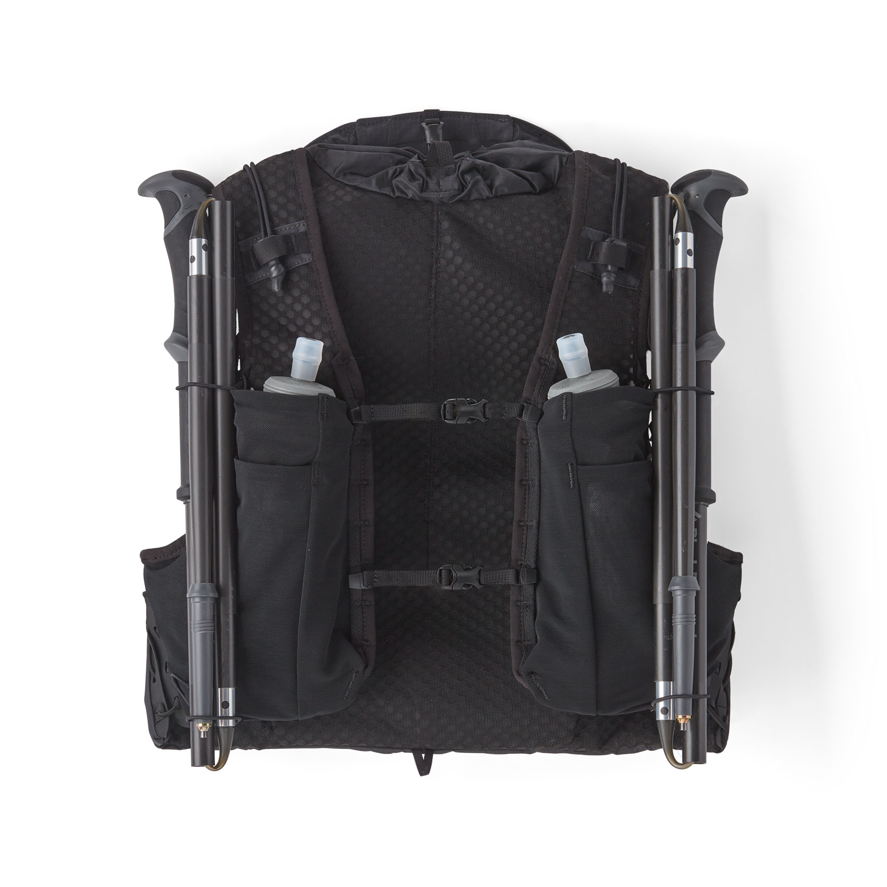 Four chest-harness pockets and numerous expanding and static storage options on the pack's backside carry a variety of gear to handle a wide range of terrain