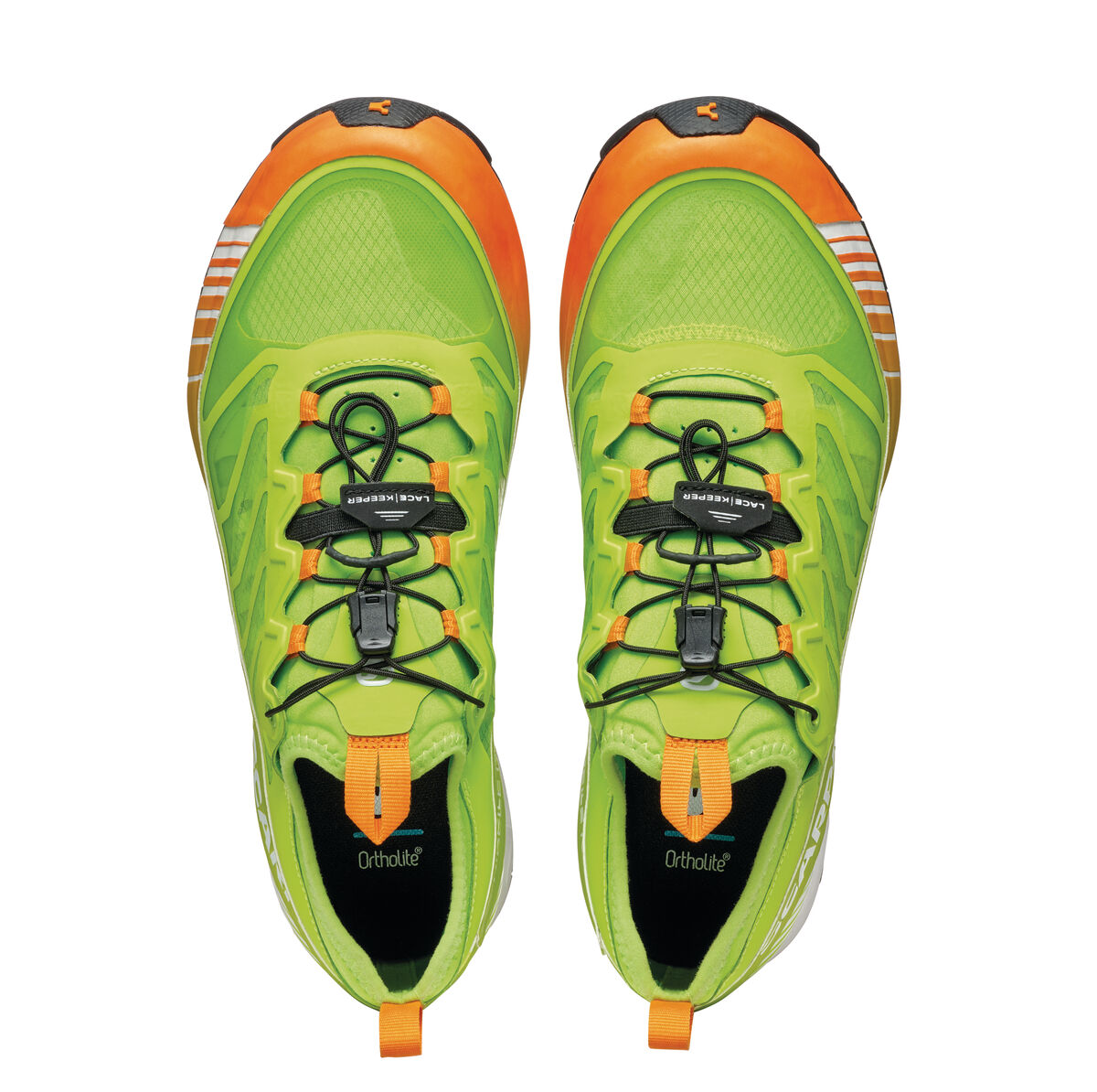 The upper is built with Sock-Fit LW by SCARPA construction, featuring a lightweight and super breathable mesh bootie with heat-sealed reinforcements, which guarantees a precise and even wrap around the foot, while still providing outstanding comfort and flex at the ankle collar, tongue and forefoot. The shoe is built to wrap the foot with precision thanks to it’s reduced volume fit, perfect for this more technically oriented shoe. The heel is stabilized by an TPU band that completely wraps the shoe.
