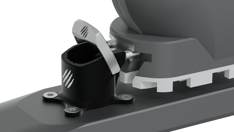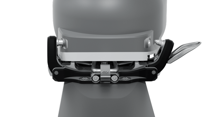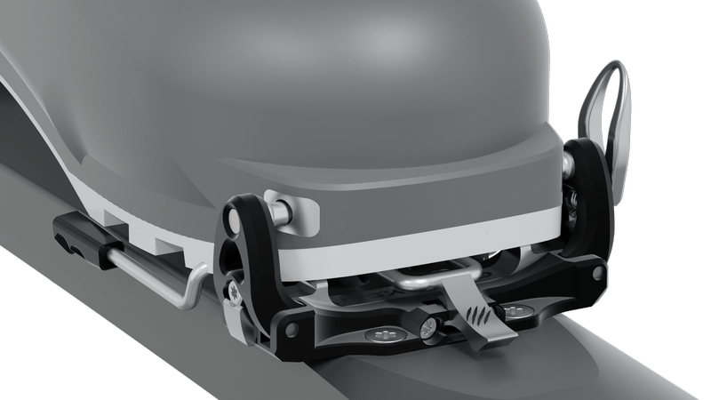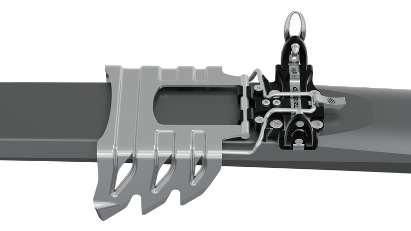 Toe of binding offers a comfortable and simple GRIZZLY FIX locking system. GRIZZLY FLEX makes it possible to adjust pins spacing to enable the use of the most common ski touring boots on the market. GRIZZLY STEP situated on the safety spring on the toe of binding improves precision of positioning ski boot while clipping into GRIZZLY.SKI binding. Toe of binding is ready to mount ski crampon adapter (to be ordered separately).